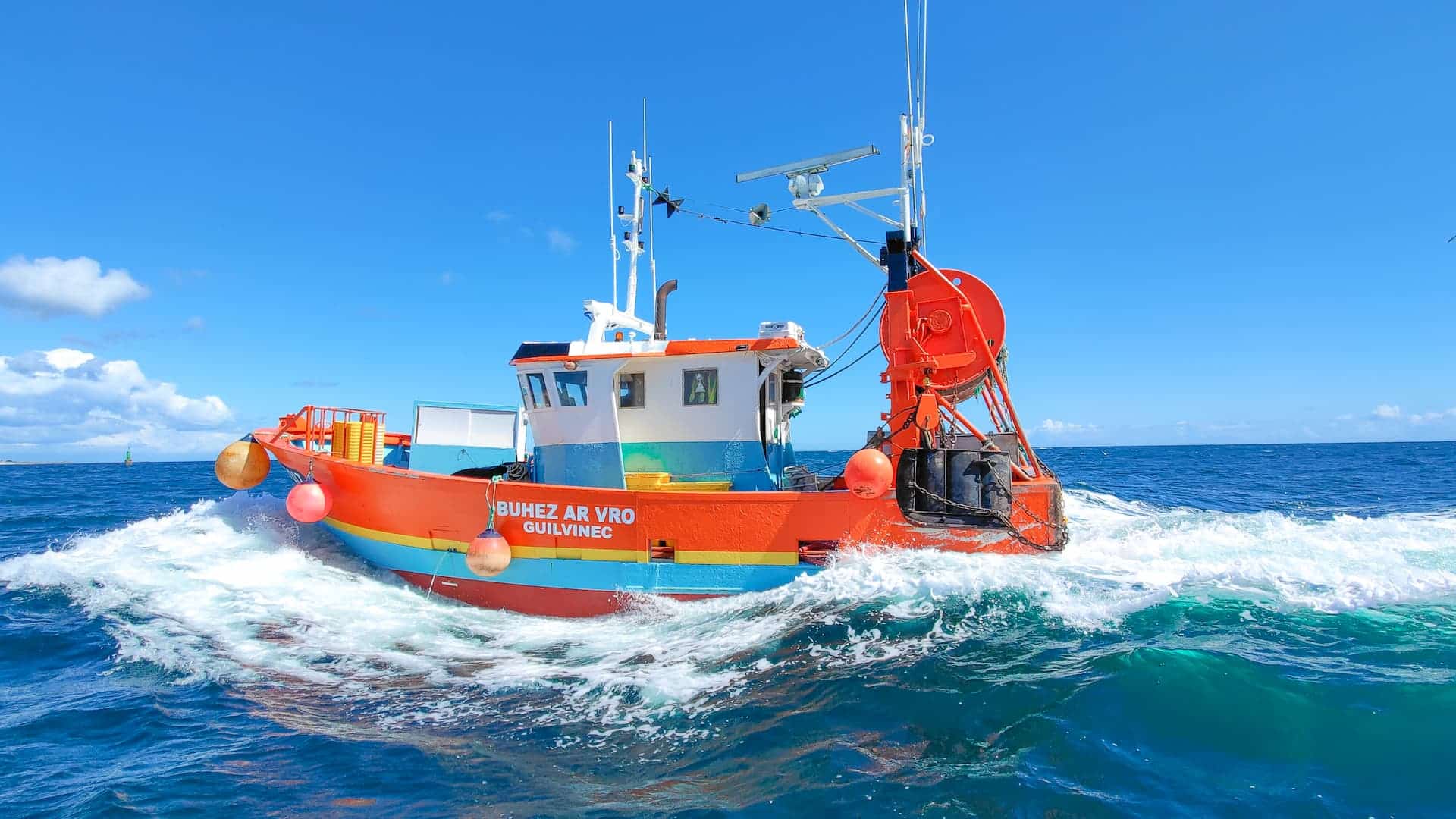 Behind the auction, inshore fishermen rub shoulders with offshore fishermen, trollers and caseyeurs. Each armament has its own colors and identity.