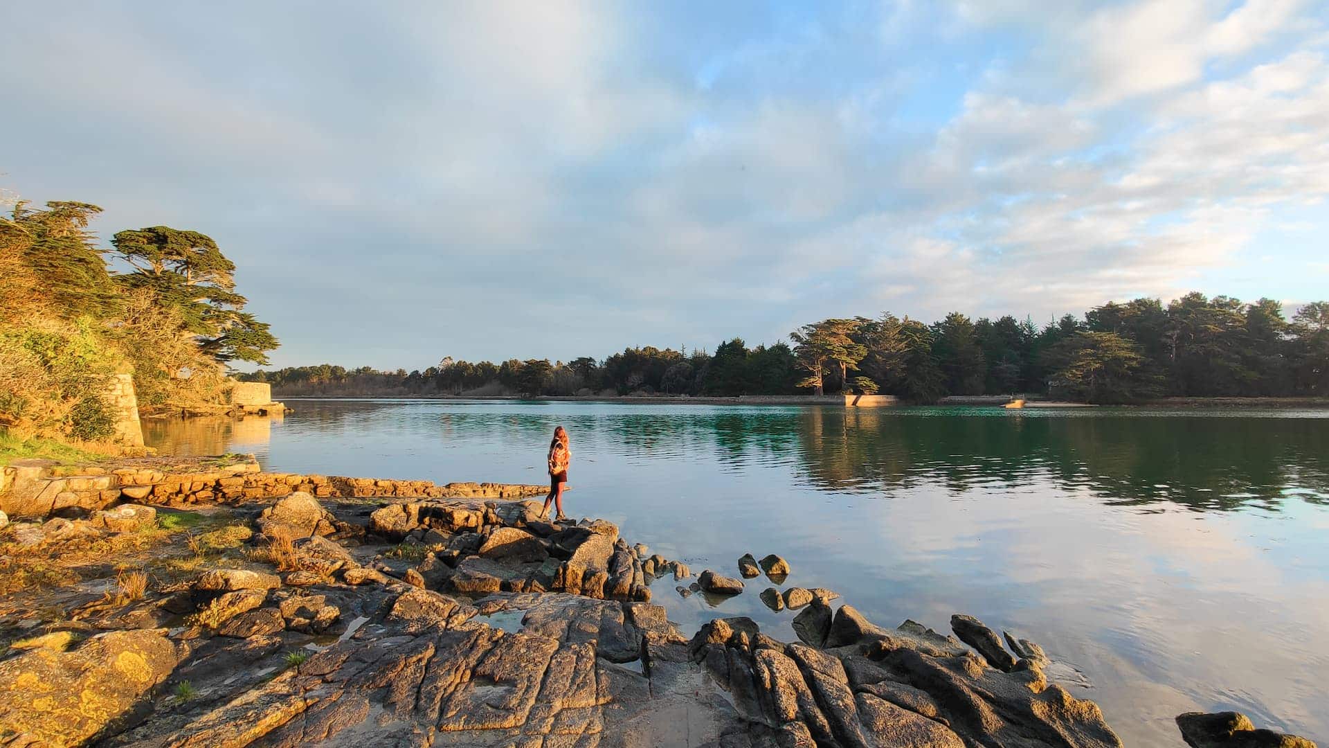 From one bank of the Pont l'Abbé river to the other.